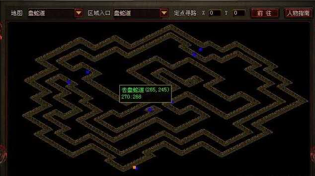 第四步,进入盘蛇道后选择坐标(265、245)
