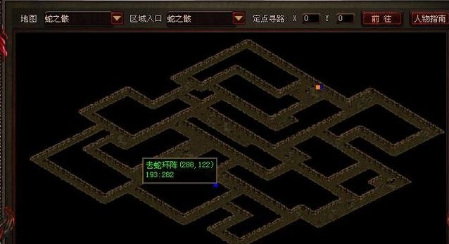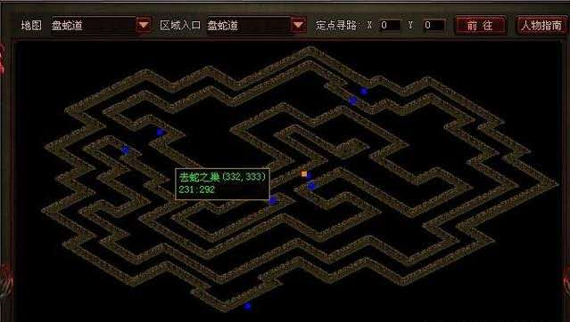 第三步,进入百虫穴后选择盘蛇道,其坐标为210、485。
