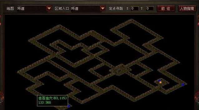 第二步,驶入环道前往百虫穴(坐标63、115)