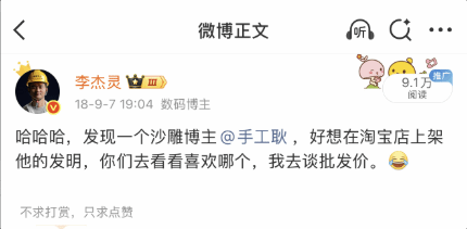 有博主针对此事评论道:“手工耿是我的偶像”,还晒出了自己2018年发布的博文,文中提到当时曾想在淘宝上购买他的发明。