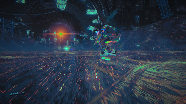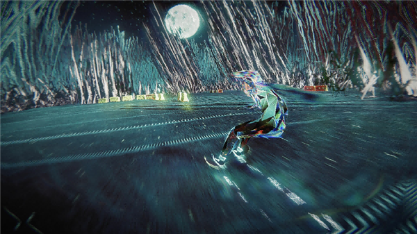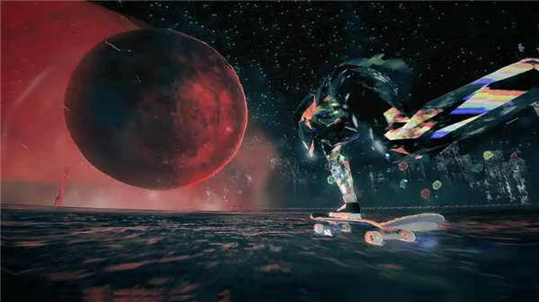 游戏的视觉艺术巧妙融合“恶魔美学”“蒸汽波美学”与“破碎美学”,营造出压抑与叛逆交织的独特视觉氛围。画面以血红色与黑曜石黑为基调,红色隐喻痛苦、火焰及恶魔契约,黑色则关联深渊与未知,二者碰撞形成强烈视觉张力,勾勒出地狱世界的压迫感与神秘感。主角采用半透明晶体材质,表面遍布裂痕纹理,其结晶质感在霓虹与星光下可折射出斑斓碎片光芒;在灰烬与硝烟弥漫的地狱场景里,每一次滑行都似在黑暗中划开一道彩虹,暗合于宿命枷锁中追寻自由的核心主题。滑板高速移动时,光线随场景流动,既强化了速度感与空间纵深感,又呈现出令人目眩的三维动态效果,梦幻感十足。