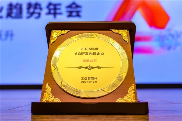 凭借在 6G 早期研发阶段的投入和实践,高通获评工信智媒体“2025 年度 6G 研发先锋企业”。评审方认为,高通不仅在推动 6G 技术演进,也在与产业合作伙伴一起探索 AI、通感一体化等创新方向,让具备情境感知能力的智能计算无处不在。