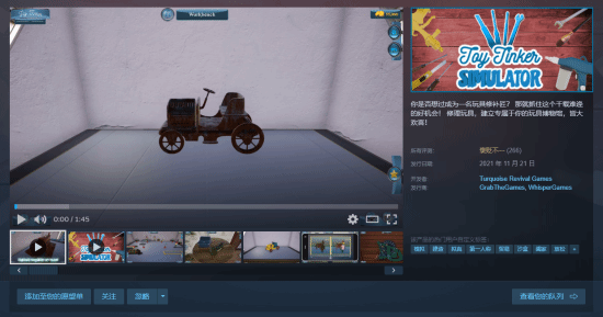 近日,Turquoise Revival Games开发的第一人称休闲模拟游戏《Toy Tinker Simulator》已在Steam平台开启免费领取活动,该游戏国区原价52元,领取时间从即日起持续至北京时间12月22日凌晨2点结束。