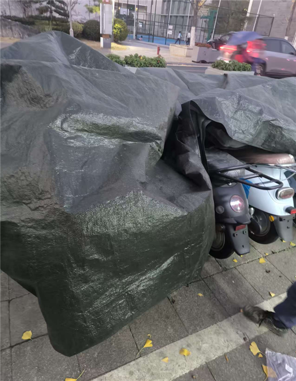 知危还看到,有些店铺摆在路边的待售旧国标车辆都用防水布遮盖了起来,在知危表示看车意向后,店主掀起防水布一角说:只能钻进去看了。