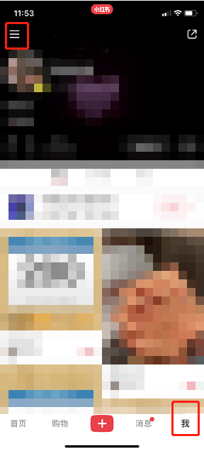 1、首先打开小红书应用,进入“我”的页面后,点击左上角带有三条横线的图标。