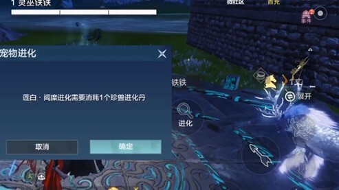 当宠物处于身边时,点击进化按钮就会弹出消耗进化丹的提示,此时点击确定即可。