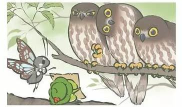 4、问路:青蛙和小伙伴一起迷路了,在路边询问三只麻雀。
