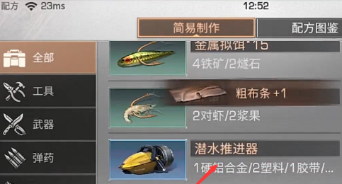然后在配方里再制作一个潜水推进器,就像下面这张图展示的那样。