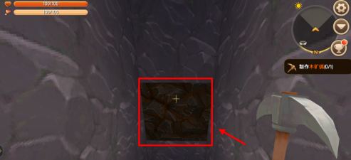 取出工作台,接着用挖矿能得到的岩石块和在地表或挖矿时可获取的泥土块,合成出一个熔炉。