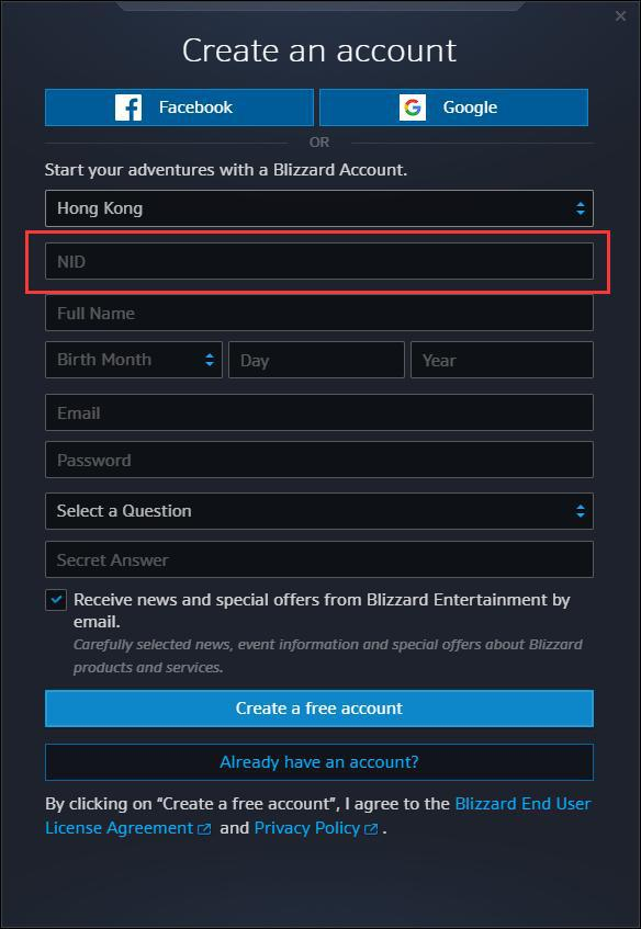 3.要是注册的是香港地区的ID,可使用本人身份证(NID一栏填写身份证),请注意:此处填写的注册邮箱不能与你在国服用过的邮箱重复。