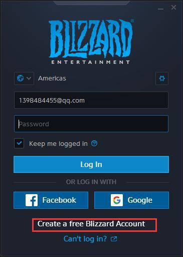 2.点击“Creat a free Blizzard Account”: