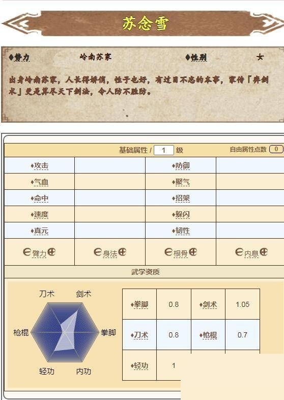 2、建议给苏念雪配备装备,苏念雪本身在剑法和轻功方面就有很高的天资,装备幻影剑诀后,能够充分发挥该武学的效果。