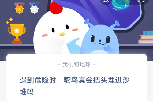 在支付宝蚂蚁庄园的每日一题里,9月20日的题目是“遇到危险时鸵鸟真的会把头埋进沙堆吗”,不少用户可能也好奇遇到危险时鸵鸟是否真的会埋头,接下来就和小编一起了解相关答案吧!