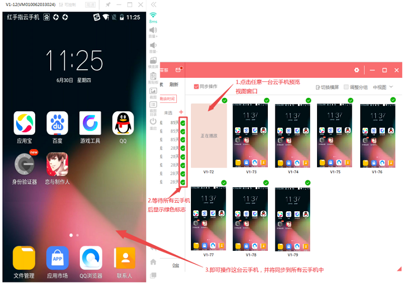 3、等所有待选设备都显示绿色标志后,打开任意一台的预览播放窗口,就能借助这个桌面窗口同步操控多台设备了。