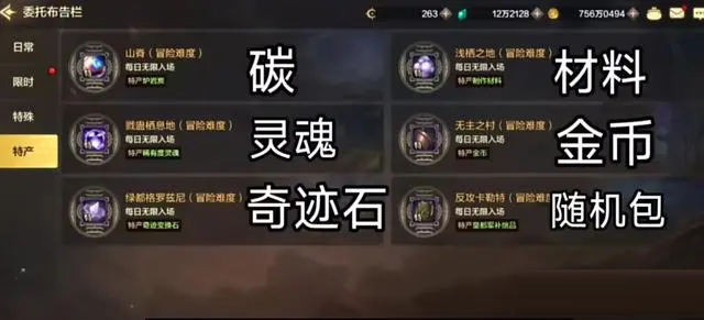 每日特殊地下城如王的遗迹、机械牛、马戏团、悲鸣等,这些地图主要以打金为核心,且进入时不扣除疲劳值。搬砖地图如冒险级绿都、冒险级山脊、冒险级暗精灵墓地等,这些地图产出丰富的材料和泰拉。