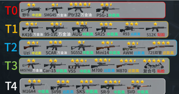 1.AKM(狙击枪中的王者,属于T0级别万金油)