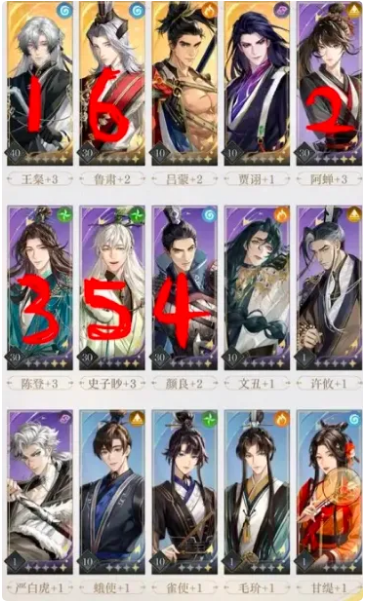 如鸢第三章阵容搭配:王粲+阿蝉+陈登+颜良+狮子喵+鲁肃。