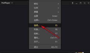 在弹出的菜单里,找到“选项”这一选项并点击它。这时就会打开PotPlayer的选项设置窗口。