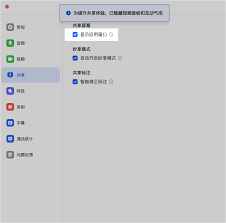 开启共享功能后,界面会显示若干共享相关的设置选项。你可以自行决定是否开放参会者的互动权限,像标注、画笔这类操作功能,都能依据实际需求灵活配置。另外,也可以对共享的画质参数进行调整,这样就能保证在各种不同的网络条件下,参会者都能获得较为流畅清晰的观看感受。