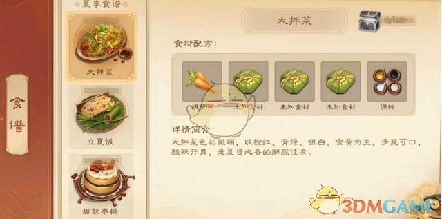 在三国杀里,大拌菜属于夏季食谱。玩家得依据提示挑选正确食材方可进行烹饪。然而,不少小伙伴还不清楚三国杀大拌菜的配方,接下来小编就给大家详细介绍大拌菜配方一览,感兴趣的玩家可别错过啦,希望能帮到大家。