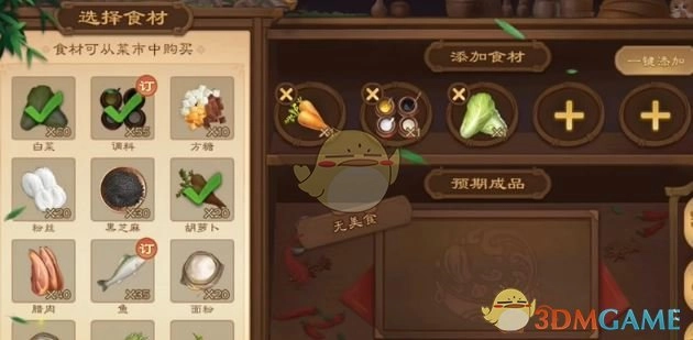 3、玩家能够依据颜色来挑选食材,具体而言,呈现青绿颜色的是白菜,银白颜色的是粉丝,而金黄颜色的则为蛋黄。
