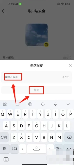 4、进入昵称修改页面,输入想要设置的昵称,然后点击【提交】按钮。