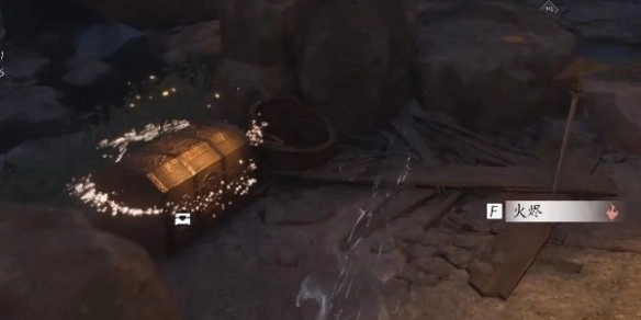 3、此时,在平台上火盆的旁边,能够发现一个神秘宝箱。