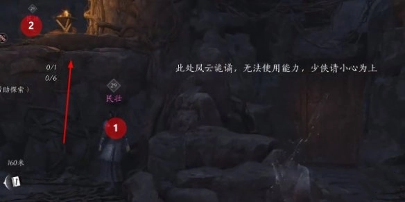 4、随后运用听风辨位技能,于下图所示位置寻得第二个宝箱。