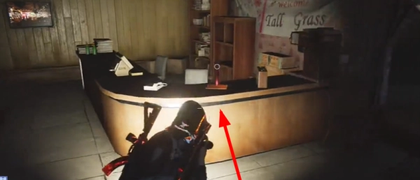 3、走进大门进入屋内,在下图所示位置能够找到桌子。