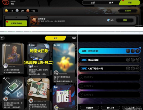 1、在绳网处接到任务【探索委托-秘密大扫除(说谎的代价·其二)】,当时看到有人询问【有人愿意一块做笔大生意嘛】