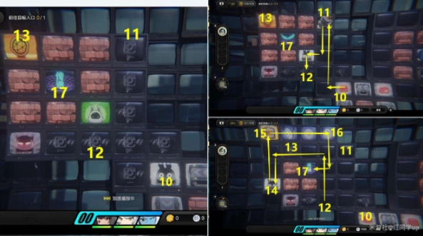 4、首先前往11区,按下R键放置一枚炸弹,接着走到12区引爆炸弹,以此炸开左边的墙壁。随后,按顺序前往13 - 16区领取奖励,最后到17区进行传送。