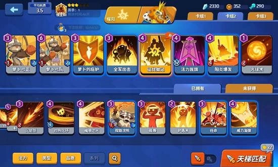 卡组搭配:萝卜弓卫、萝卜弓队、萝卜的庇护、全军出击、征伐徽记、法力族旗、阳炎爆发、光球术。