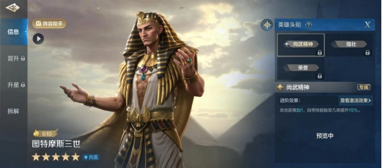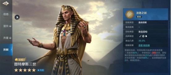 对还不熟悉图特摩斯三世的小伙伴,就来看看他的技能与搭配介绍吧。