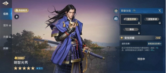 下面,对还不熟悉明智光秀的小伙伴,就来看看他的技能与搭配介绍吧。