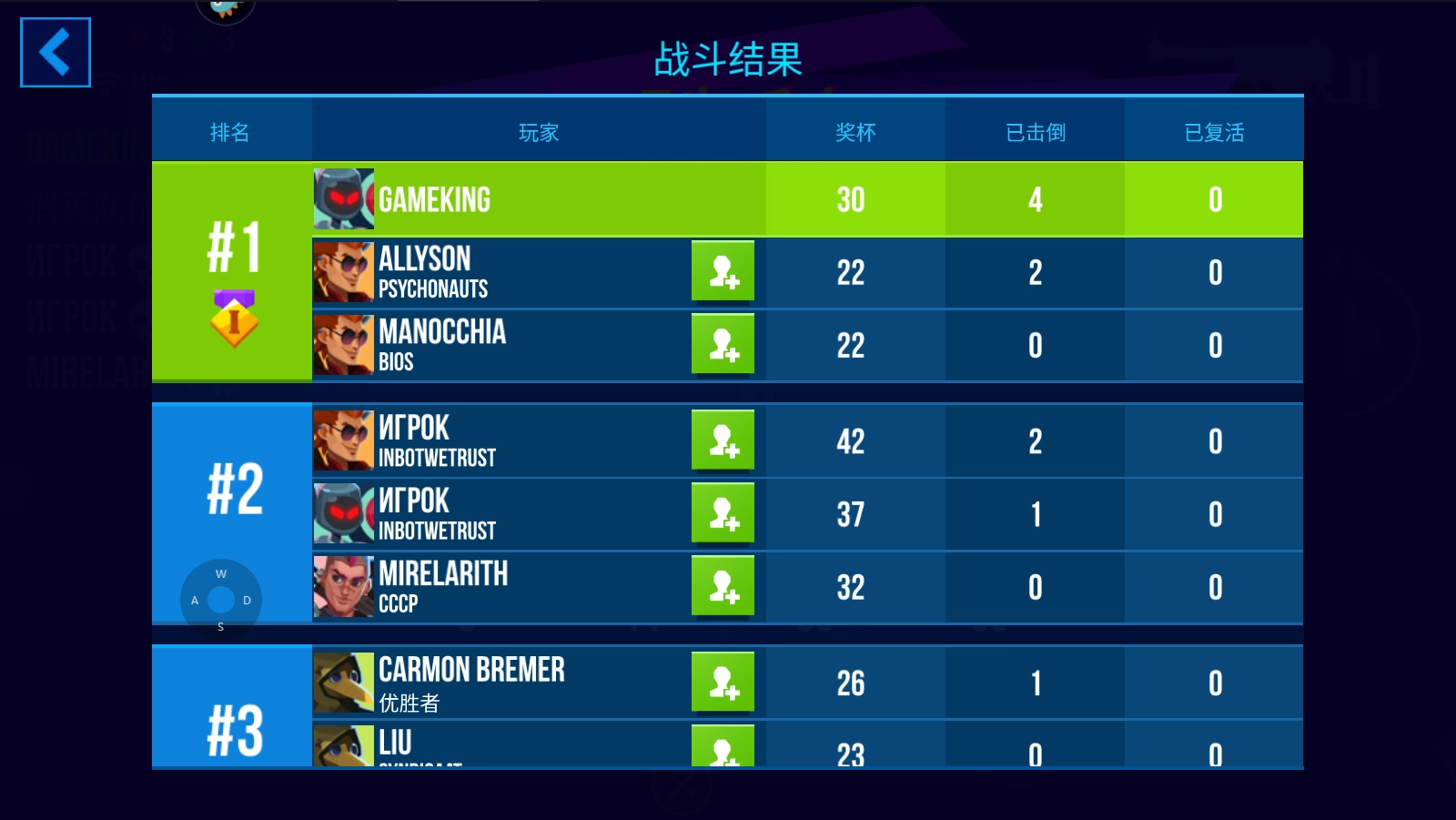 方法4:如图片所示,当我们结束一局比赛后,点击收集旁的排行榜,进入战斗结果界面就能进行添加操作。刚接触这款游戏的玩家,可以多添加一些自己认为不错的玩家为好友,哪怕是在对局中遇到的敌人也能加。在成长阶段,彼此组队战斗会顺畅不少。