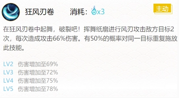 3、技能三:狂风刃卷(消耗3点火焰能量)。