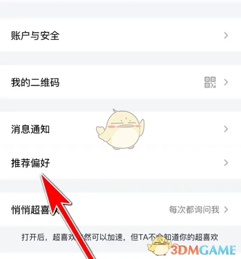 2. 点击“推荐偏好”选项。