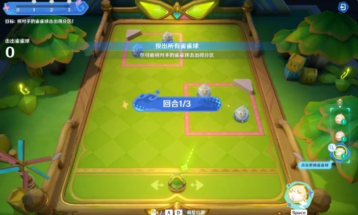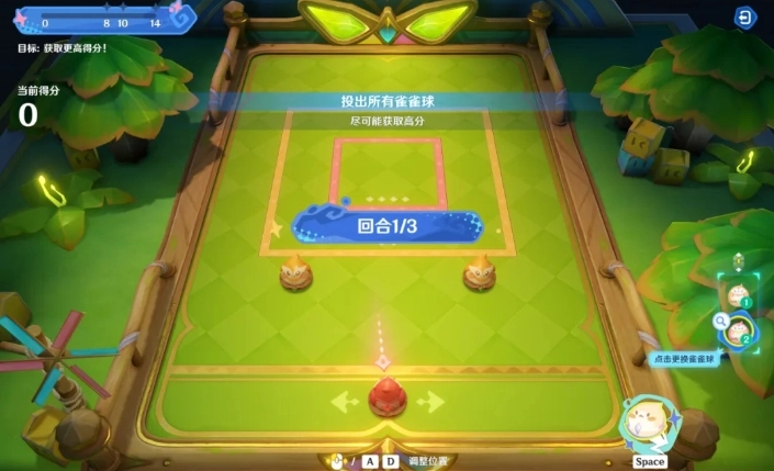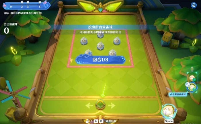 首先拿孤独球对准正中间的雀雀球,接着将力量蓄到大概三分之一处,随后直接发射,如此一来就能把周边一圈都给推出去。