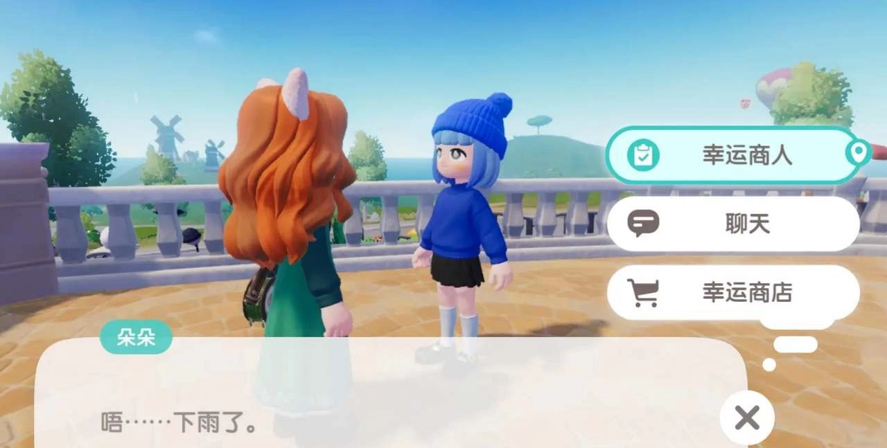 1、游戏里,幸运商人朵朵仅在雨天或者彩虹天气时才会现身。