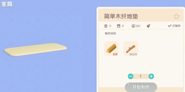 3、若要制作木纤地毯,需准备八个灌木枝和八个木材,接着前往工艺台进行制作。