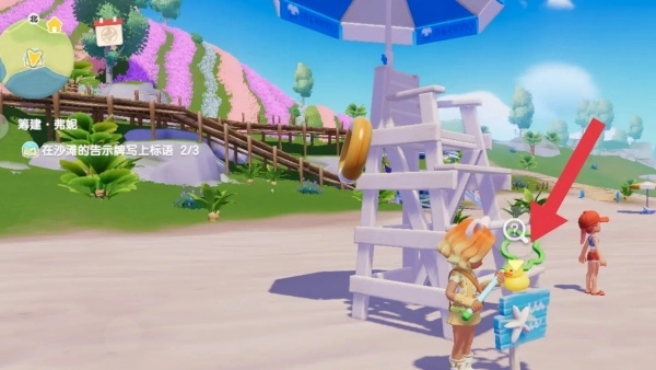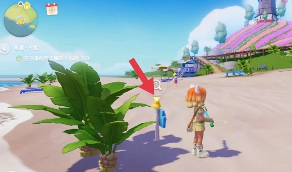 2、总共有三块告示牌,首先与花田处的弗尼交谈,领取任务后前往沙滩。