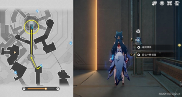 2. 抵达指定地点后,前往电梯所在位置,乘坐电梯去往中转狱层。