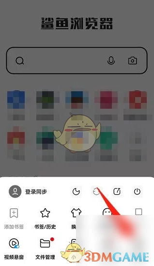 1. 第一步,打开鲨鱼浏览器,进入其首页,接着点击页面下方的三条杠符号。