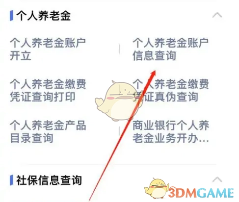 2、接着在个人养老金板块,点击【个人养老金账户信息查询】选项。