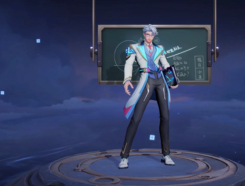 本次星元设计的灵感源自赛场教练。在电竞舞台上,发光发热的不只是选手,还有那些凭借专业执教,于赛场“筹谋策划”风云变幻的教练员。星元整体配色选取了自信优雅且智慧干练的白蓝,同时搭配粉、金装饰作为点缀,使得严肃氛围中洋溢着电子竞技的活力。在诸葛亮的外装肩饰、腰带背后以及武器上,均设计了带有KPL字样的元素,将赛事细节展现得淋漓尽致。