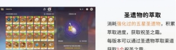 1当消耗经过强化的五星圣遗物,使萃取进度提升到满值时,就能获取一个祝圣之霜。