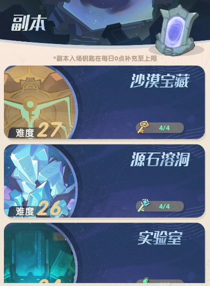 副本是养成资源的主要来源,上面说到的铜镐、金币等都可以从副本里获取。