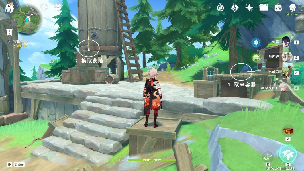 5、随后要依照下图所示顺序来换取药液,紧接着爬到坩埚的顶部,在背包里找出密钥并使用,退出背包后点击进入。