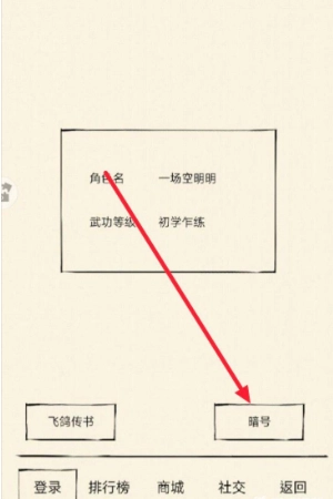2、在联网界面,点击右下角的“暗号”按钮,此按钮实际上就是兑换码按钮。