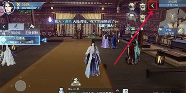 1. 当进入游戏之后,点击游戏首页右上角的箭头,隐藏菜单便会弹出。
